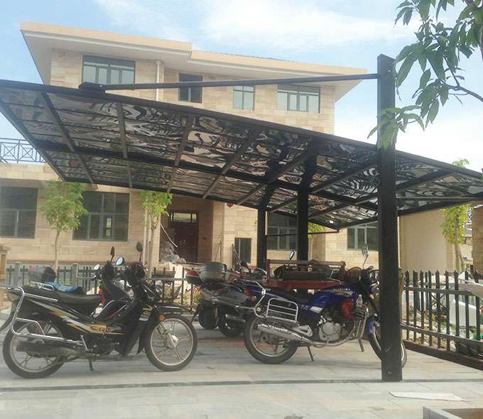 款式:单边型车棚、合抱型车棚、蝴蝶型车棚